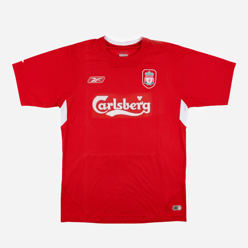 Maillot porté par Steven Gerrard lors de la finale 2005, rouge historique d’Istanbul.